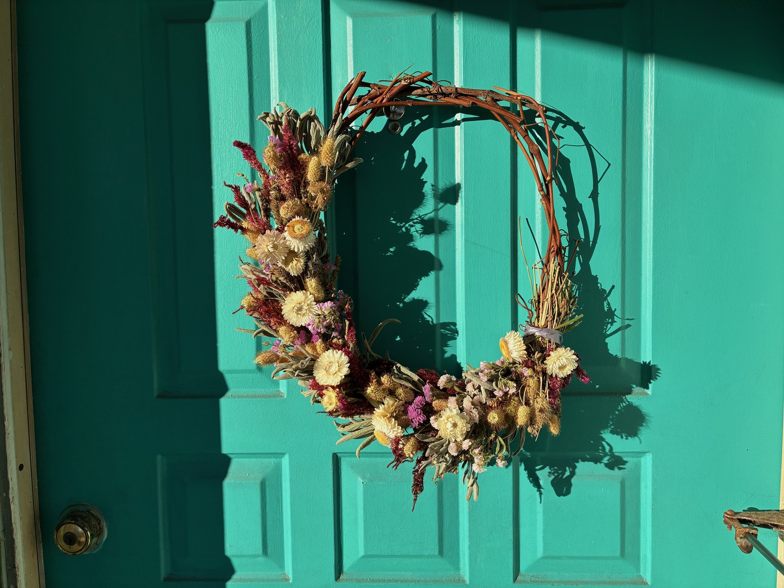 Our dried flower wreaths are thoughtfully handcrafted using flowers and foliage grown with care on our Detroit farm. Each wreath features a harmonious blend of preserved blooms, textural grasses, and richly colored stems that capture the natural beauty of the seasons.